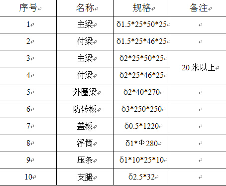 不銹鋼內(nèi)浮盤主要材料明細(xì)表